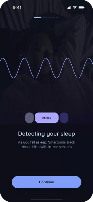 Throughout the night, Smartbuds monitor your brainwaves in real-time. As your brainwaves shift, Smartbuds detect these shifts and recognize when you enter slow wave sleep.