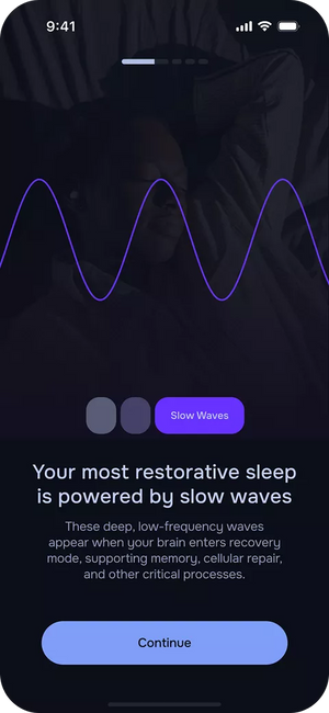 Slow-wave enhancement is a technique that uses precisely timed sound (soft pink noise) to nudge your brain waves into their most restorative rhythm. This the enhances the quality of your sleep without waking you up.