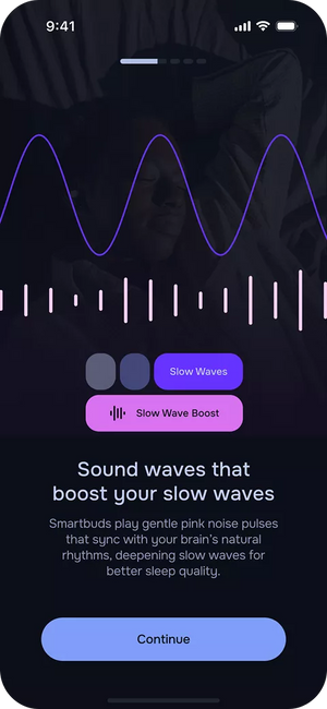 When in slow wave sleep, Smartbuds play audio in sync with your brain rhythms to increase slow wave activity.